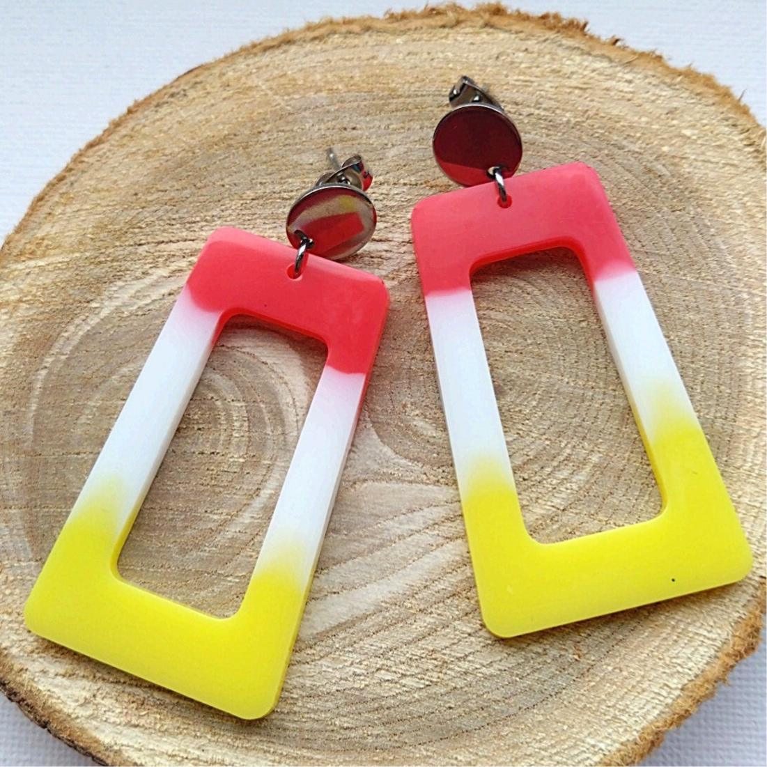 Deze Oeteldonk hangers zijn gemaakt van epoxy. De oorsteker is gemaakt van roestvrij staal. De oorbel is in lengte +/- 6 cm.