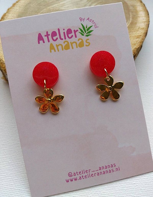 Deze leuke mini bloementjes hangers zijn gedeeltelijk gemaakt met epoxy. De oorsteker is gemaakt van roestvrij staal. In lengte zijn de oorbellen ongeveer 2,5 cm. Ook leuk vinden kinderen vanaf een jaar of 8.