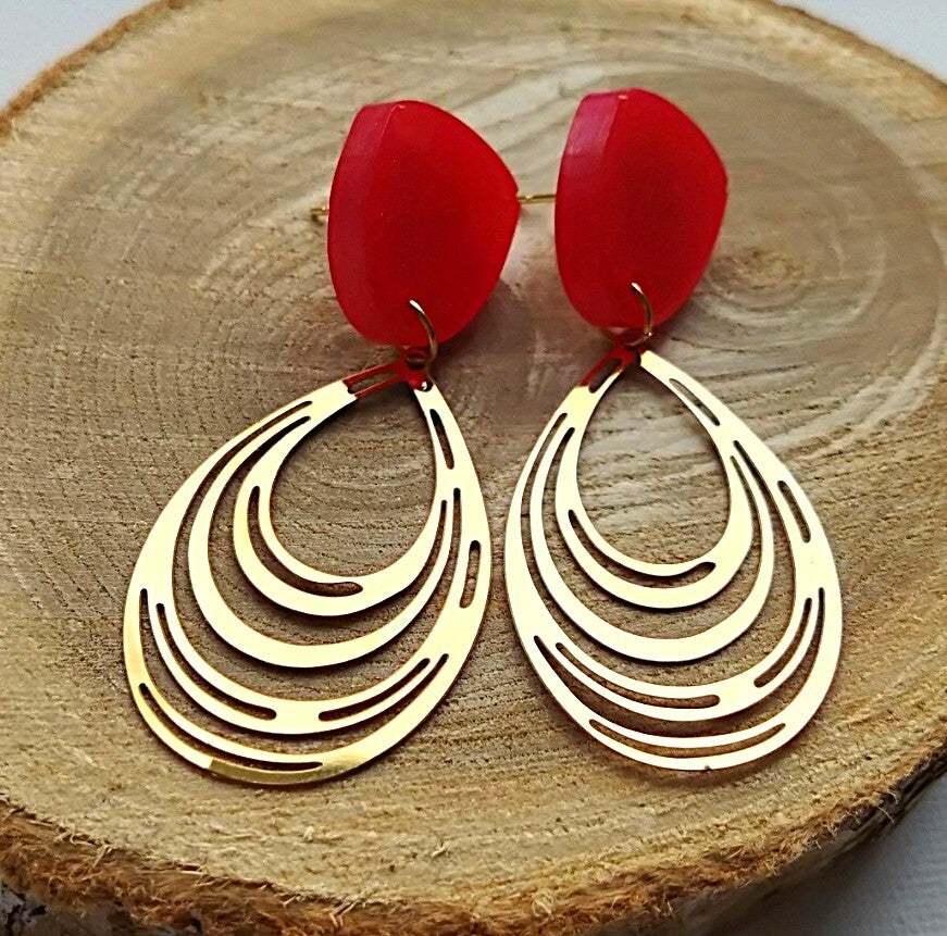 Deze charmante hangers zijn gedeeltelijk gemaakt met epoxy. De oorsteker is gemaakt van roestvrij staal. In lengte zijn de oorbellen ongeveer 5,5 cm.