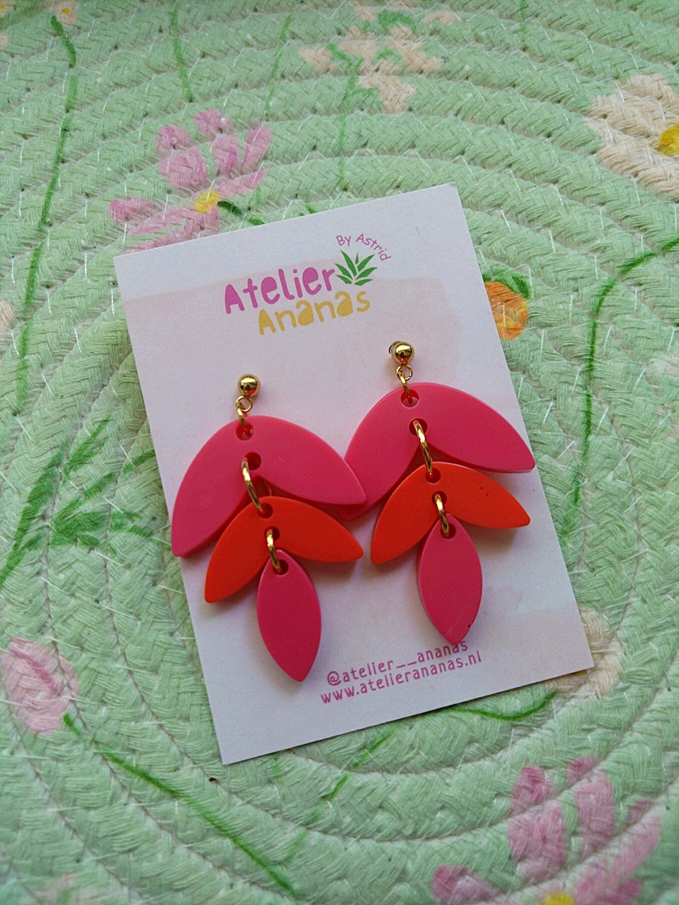 Deze zomerse hangers zijn gemaakt met epoxy in de kleuren roze en oranje. Prachtig bij een leuk zomerjurkje!. De oorsteker is gemaakt van roestvrij staal. De oorbel is in lengte +/- 5,5cm.