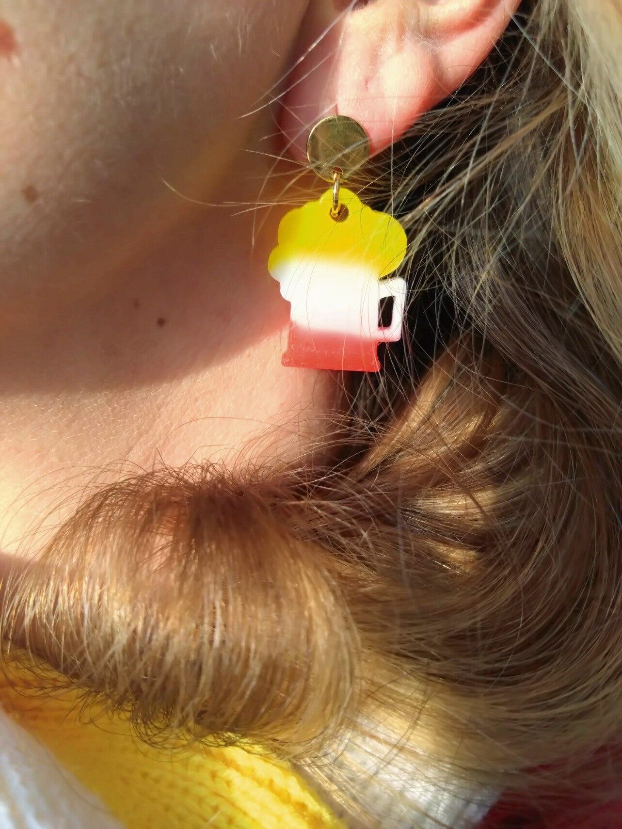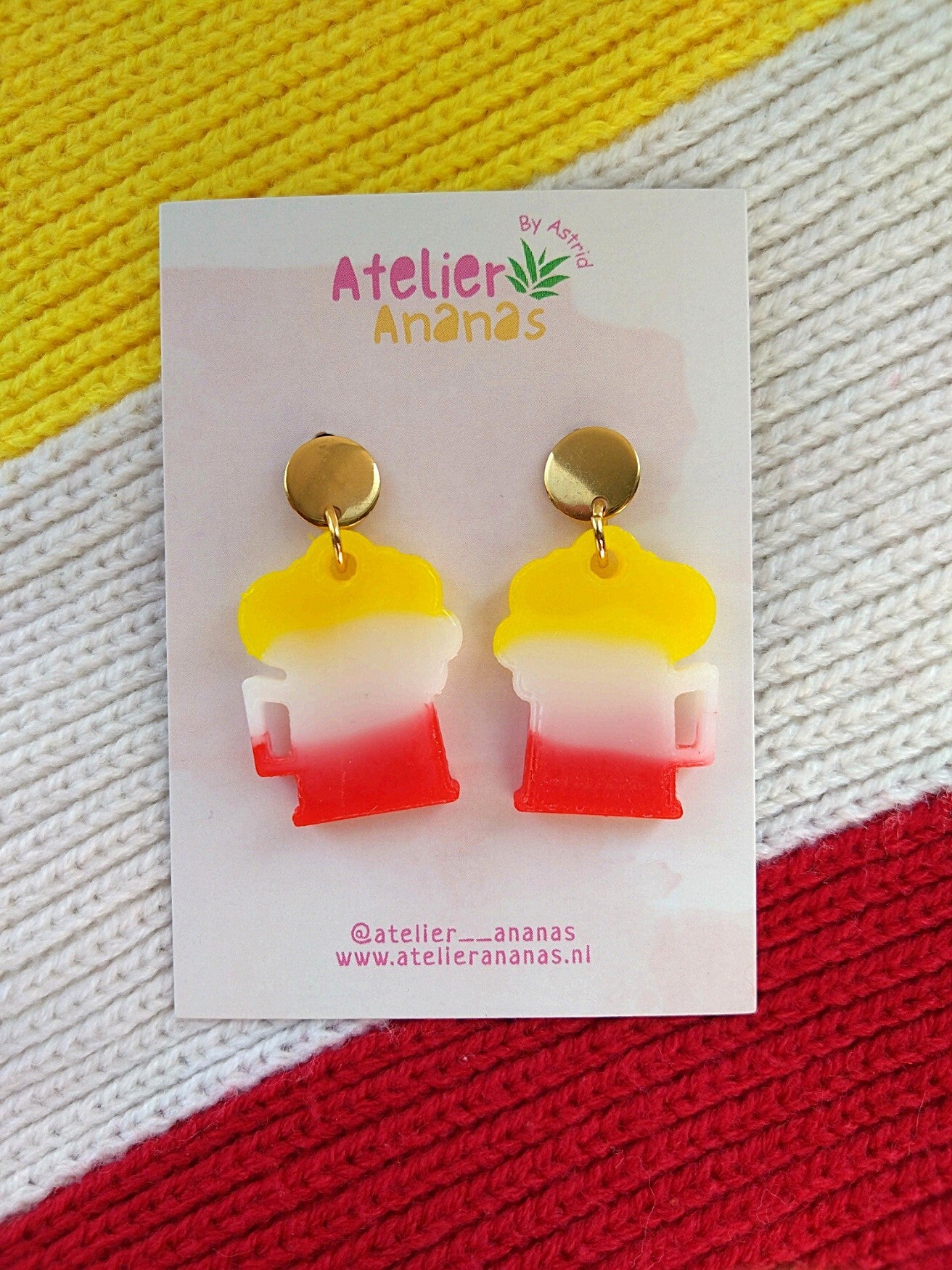 Deze Oeteldonk bierpullen hangers zijn gemaakt van epoxy. De oorsteker is gemaakt van roestvrij staal. De oorbel is in lengte +/- 4 cm.
